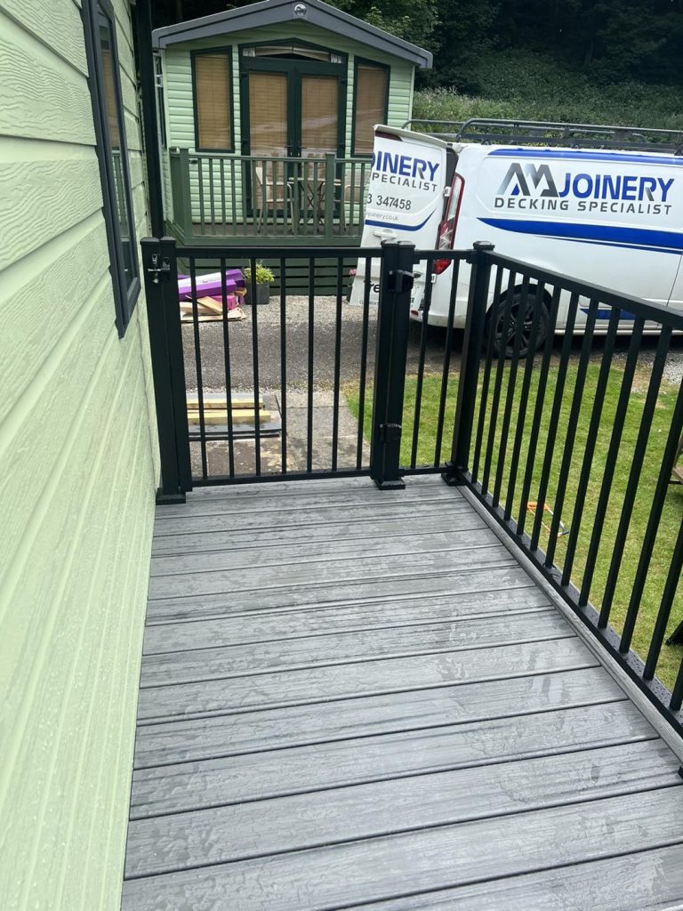 A beautiful Trex composite deck around a caravan down in Kendal! Things the 3rd caravan we have done on this site. Beautiful